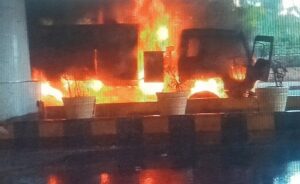 कानपुर। बीपीएस न्यूज – बुधवार की सुबह कल्याणपुर जीटी रोड स्थित कानपुर विश्वविधालय मेट्रो स्टेशन के नीचे नगर निगम के एक डंपर पर चलते-चलते अचानक आग लग गयी। आग को देखकर डंपर चालक घबरा गया और चालक तथा परिचालक ने किसी तरह डंपर से कूदकर अपनी जान बचाई। आग की सूचना पर मौके पर दो दमकल गाडियां पहुंच गयी और लगभग डंढ घंटे में आग पर काबू पाया।