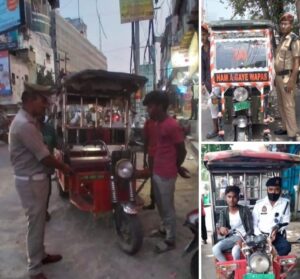 कानपुर। शहर में एक तरफ तो नाबालिक ई रिक्शा चालकों की मनमानी के कारण आय दिन जाम की स्थिति देखने को मिलती हैं।दूसरी तरफ नाबालिक ई रिक्शा चालक मुसीबत का कारण बने हुए है।इस मुसीबत को दूर करने के लिए कानपुर यातायात पुलिस कमर कस चुकी है और सड़को पर नाबालिक बच्चो द्वारा वाहन चलाने पर उन पर कार्यवाही का चाबुक भी ट्रैफिक पुलिस ने चलाना चालू कर दिया है जिसका नतीजा भी सामने देखने को मिल रहा है।आपको बता देकि शनिवार को कानपुर डीसीपी यातायात रवीना त्यागी के आदेशानुसार पूर्वी जोन नरौना चौराहा,झाड़ी बाबा पड़ाव,पनचक्की चौराहे पर नाबालिक बच्चो द्वारा वाहन चलाने पर टीएसआई शिवाकांत शुक्ल मय हमराही सिपाही,गार्ड के द्वारा चेकिंग अभियान चलाया गया जिसमे बैटरी रिक्शा,सहित अन्य वाहन नाबालिक द्वारा चलाये जाने की कार्यवाही का निर्देश हुआ था निर्देशानुसार नरौना चौराहे पर 10 वाहन ऐसे मिले जिन्हें नाबालिक बच्चो द्वारा बेधड़क चलाया जा रहा था जिसमे एक ई रिक्शा ऐसा मिला जिसमे दूसरे ई रिक्शा की नंबर प्लेट लगा रखा था।ट्रैफिक पुलिस के इस अभियान से ऐसे मामले सामने आए है जो अपराध की श्रेणी में आते है तो ये भी कहना गलत नही है कि पूरे शहर में कितने ऐसे वाहन है जो इस तरह से वाहनों में दूसरों वाहनों की नंबर प्लेट लगाकर ट्रैफिक पुलिस को गुमराह कर रहे है और कोई घटना होने पर ये बचकर निकल जाते है। ऐसे ही छोटे छोटे अपराध एक बड़े अपराध को जन्म देते है।नम्बर प्लेटो की अदला बदली करके शहर में वाहन जोर शोर से चल रहे है अभी कुछ दिनों पहले भी कानपुर ट्रैफिक पुलिस के सब इंस्पेक्टर शिवाकांत शुक्ला ने एक टैम्पो को पकड़ा था जिसमे भी नंबर प्लेट की अदला बदली कर टैम्पो चलाई जा रही थी जिसका पर्दाफाश भी अभियान के तहत ही हुआ था। शनिवार को अभियान के तहत एक ई रिक्शा भी ट्रैफिक पुलिस की गिरफ्त में आया जिसमे भी नंबर प्लेट बदलकर सवारियों को ढोया जा रहा था।