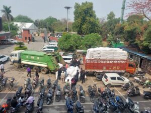 माल मालिक द्वारा देर शाम तक जुर्माना न जमा करने के कारण ट्रक को नगर निगम परिसर में ही खड़ा कर दिया गया है।
