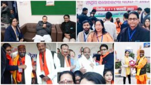 इसके पूर्व मार्गदर्शक डॉ इन्देश कुमार जी व राष्ट्रीय संत एवं महामंडेश्वर स्वामी अभिजितानंद जी महाराज का आये देश भर के पदाधिकारियों ने भव्य स्वागत किया।