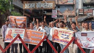 कानपुर। हमराज कंपलेक्स मार्केट के अग्निकांड के बाद जो व्यापारियों की हालत है उसको लेकर व्यापारी बहुत परेशान है हमराज के बगल में एक मार्केट अरजन कंपलेक्स अग्निकांड से बच गई है इसके सारे व्यापारियों मैं आज मार्केट के बाहर योगी जी के फोटो लेकर यह पुकार लगाई कि *योगी जी अब सुनो पुकार बचा लो हम व्यापारियों का व्यापार* यह कहते हुए मार्केट खोलने की निवेदन किया चुकी है रेडीमेड मार्केट है इसमें ईद का समय चल रहा है और सालक का उससे संबंधित कपड़ों का स्टॉक रखा हुआ है मार्केट खोलने से व्यापारी उस माल को बेच सकेगा वह माल अन्य सीजन में बेचने लायक नहीं होता है उससे व्यापार का बहुत नुकसान हो रहा है और लगभग 300 परिवार रोड पर आने के कगार पर हैं मार्केट खुलने से जो अन्य मार्केट जल गई है उनके व्यापारी भी इसी में समाहित हो जाएंगे और व्यापार चल निकलेगा बहुत सारे परिवार सड़क पर आकर मरने से बच जाएंगे कुछ व्यापारी तो यह कह चुके हैं कि अगर मार्केट नहीं खुली तो हम लोग के लिए आत्मदाह के अलावा और कोई चारा नहीं बचेगा मार्केट के व्यापारियों ने प्रशासनिक अधिकारियों को धन्यवाद देते हुए कहा कि आप लोग के सतत प्रयासों से ही यह मार्केट बच गई है अब हम लोग को भी कृपा मरने से बचाइए हम लोग की दुकानें खुलवा दीजिए जैसे अगल बगल की मार्केट उसे टच होती हुई दुकान खोल दी गई है अतः अरजन मार्केट में आग  नही लगी है वह खोल दी जाए।