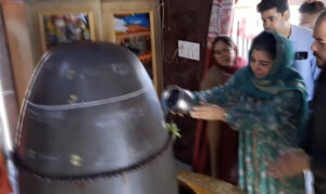 हम आपको बता दें कि सोशल मीडिया पर जो वीडियो वायरल हो रहा है उसमें दिख रहा है कि महबूबा मुफ्ती मंदिर के अंदर पूरा चक्कर लगाने के बाद शिवलिंग के सामने खड़ी होकर पूजा करती हैं और जलाभिषेक करती हैं। सोशल मीडिया पर इस वीडियो पर तमाम तरह की टिप्पणियां भी आ रही हैं। लेखिका शेफाली वैद्य ने लिखा है कि खातून महबूबा मुफ्ती एक हिंदू मंदिर में प्रार्थना कर रही हैं और फतवा आ रहा है। प्रीति गांधी नामक यूजन ने ट्वीट किया- क्या किसी ने कल्पना की थी कि ऐसा दिन आएगा जब महबूबा मुफ्ती पुंछ के नवग्रह मंदिर में शिवलिंग पर जलाभिषेक करेंगी।