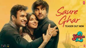 टी-सीरीज़ फिल्म्स और राव और सप्रू फिल्म्स प्रोडक्शन की फिल्म ‘यारियां 2’ के पहले सॉन्ग ‘सौरे घर..’ का टीज़र जारी कर दिया गया है। इसमें यश दासगुप्ता, अनास्वरा राजन, वरीना हुसैन और प्रिया वॉरियर नज़र आएंगे। ‘यारियां 2’ के टीज़र ने लोगों में एक जबरदस्त एक्साइटमेंट क्रिएट किये हुए है और अब  इस साल की सबसे बड़ी पारिवारिक म्यूजिकल फिल्म का पहला  सॉन्ग ‘सौरे घर..’ 27अगस्त को रिलीज़ होने के लिए पूरी तरह तैयार है। इस फिल्म के टीज़र में कुछ मेजिकल सॉन्ग के साथ ‘सनी सनी’ गाने की झलक दिखाई गयी थी परन्तु इसके अलावा फिल्म में कई और दिलचस्प गाने हैं जो निश्चितरूप से लोगों को अपनी और आकर्षित करेंगे। ‘सौरे घर’ के टीज़र को देख यह अनुमान लगाया जा सकता है कि यह एक डांस नंबर है, जो निश्चितरूप से दर्शकों को डांस फ्लोर पर थिरकने को मजबूर कर देगा। भूषण कुमार, कृष्ण कुमार, दिव्या खोसला कुमार और आयुष माहेश्वरी द्वारा निर्मित फिल्म ‘यारियां 2’ में दिव्या खोसला कुमार, मीजान जाफरी और पर्ल वी पुरी, यश दासगुप्ता, अनास्वरा राजन, वरीना हुसैन और प्रिया वॉरियर की मुख्य भूमिका है। इस फिल्म को  राधिका राव और विनय सप्रू ने संयुक्त रूप से डायरेक्ट किया है। यह फिल्म 20 अक्टूबर  को सभी सिनेमाघरों में रिलीज होगी।