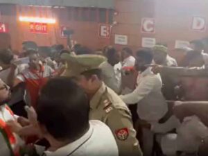 नवनिर्वाचित पार्षदों और मेयर का शपथ ग्रहण समारोह चौधरी चरण सिंह विश्वविद्यालय (CCS) के नव प्रेक्षागृह में चल रहा था. शपथ ग्रहण के दौरान बीजेपी के पार्षदों ने वंदे मातरम गाना शुरू किया लेकिन इस दौरान AIMIM के पार्षदों ने इसका विरोध किया और अपनी जगह पर बैठे रह गए. ओवैसी के पार्षदों की इस हरकत पर बीजेपी के सदस्यों ने नाराजगी जाहिर की. मामला धीरे-धीरे बढ़ने लगा और बात तू-तू, मैं-मैं तक आ गई. दोनों पार्टी के सदस्यों के बीच तनाव बढ़ता गया और नौबत मारपीट तक पहुंच गई. इसके बाद शपथ ग्रहण हॉल में मामला बेकाबू हो गया तब प्रशासन को बीच-बचाव के लिए आना पड़ा.