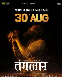 दक्षिण भारत के सिनेमाघरों में तमिल, तेलुगु, कन्नड़ और मलयालम भाषाओं में 15 अगस्त को साउथ फिल्म इंडस्ट्री के चर्चित निर्देशक पा. रंजीत द्वारा निर्देशित और चियान विक्रम व मालविका मोहनन स्टारर बहुप्रतीक्षित पीरियड ड्रामा ‘तंगलान’ प्रदर्शित किए जाने के बाद इस फिल्म का हिंदी वर्जन 30 अगस्त को सभी सिनेमाघरों में रिलीज होने वाली है। मेकर्स ने इस फिल्म के नए पोस्टर जारी करते हुए रिलीज डेट की घोषणा की है। ‘तंगलान’ कोलार गोल्ड फील्ड्स (KGF) की सच्ची कहानी पर आधारित है, जिसकी अंग्रेजों ने खोज की और अपने फायदे के लिए इसका इस्तेमाल किया। इस फिल्म में मालविका मोहनन रहस्यमय शक्तियों वाली एक जनजाति की नेता की भूमिका निभा रही हैं, जो चियान विक्रम के किरदार से टकराती है। फिल्म का संगीत जी.वी. प्रकाश कुमार ने दिया है। उम्मीद की जा रही है कि यह फिल्म सिनेदर्शकों के लिए अनोखी कॉन्सेप्ट लाने की साउथ इंडियन फिल्म इंडस्ट्री की परंपरा को, बहुत आगे ले जाएगी।