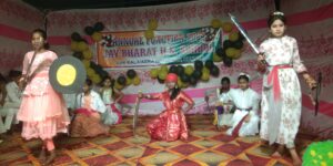 वही खूब लड़ी मर्दानी वह तो झांसी वाली रानी थी झांसी की रानी बन, मेरा रंग दे बसंती चोला माय रंग दे बसंती चोला भगत सिंह, रघुपति राघव राजा राम पतित पावन सीताराम महात्मा गांधी जैसे देश भक्ति के गानों पर बच्चों द्वारा प्रस्तुत दी गई। दहेज प्रथा की कुरीतियों पर नाटक मंचन किया गया। नन्दी पे सवार होके भोला आया रे शिव भक्ति पर झांकी प्रस्तुत की गई।