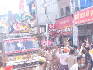 कानपुर। तिरंगा यात्रा में डिप्टी सीएम केशव प्रसाद मौर्य का आगमन हुआ कानपुर के शास्त्री नगर में भारी संख्या में उमडा भाजपा नेताओं एवं कार्यकर्ताओं का हूजूम डिप्टी सीएम के साथ में विधायक सुरेंद्र मैथानी एवं कई भाजपा के नेता उनके साथ उनके काफिले में रहे संत नगर चौराहे से यात्रा आगे को गुमटी एल आई सी बिल्डिंग के पास तिरंगा यात्रा का स्वागत भाजपा वरिष्ठ नेता अमरजीत सिंह पम्मी एवं नीतू सरदार के नेतृत्व में सिख समाज के लोगों ने यात्रा का स्वागत किया उपमुख्यमंत्री केशव प्रसाद मौर्य पर पुष्प की वर्षा की अमरजीत सिंह पम्मी ने कहा कि तिरंगा यात्रा निकालकर देश भक्ति की ओर युवाओं को किया प्रेरित! डिप्टी सीएम के काफिले में हजारों की संख्या में कारें एवं बाइक सवार हुए शामिल भारी पुलिस बल सुरक्षा में रहा तैनात मौके पर डीसीपी सेंट्रल दिनेश त्रिपाठी एवं एसीपी सहित पुलिस के तमाम आला अधिकारी सिख समाज से भाजपा वरिष्ठ नेता अमरजीत सिंह पम्मी सरदार नीतू सिंह, शरब प्रीत सिंह रौनक, पारस मदान दि्वजोत सिंह सिमरनजीत सिंह सोनू मौजूद रहे।