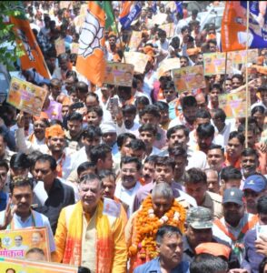 कानपुर। अकबरपुर लोकसभा प्रत्याशी देवेंद्र सिंह भोले के नामांकन में शामिल होने के लिए एकत्र हुई भीड़ व वाहनों से यातायात व्यवस्था प्रभावित हुई। सभा स्थल के चारों तरफ लग रहा जाम भीड़ की संख्या बताने के लिए पर्याप्त थी। जहां मुख्य अतिथि प्रदेश के राज्य मंत्री समाज कल्याण विभाग असीम अरुण सहित जिले प्रदेश के तमाम नेता मंच पर मौजूद रहे। मंच पर उपस्थित सभी वक्ताओं ने केंद्र सरकार द्वारा जनहित में किए गए कार्यों को गिनाते हुए भाजपा प्रत्याशी देवेंद्र सिंह भोले के पक्ष में मतदान कर भारी मतों से जिताने की बात कही। वक्ताओं ने कहा अयोध्या में रामलला यदि आज विराजमान है तो इसमें आपकी एक वोट की ताकत है। प्रत्याशी देवेंद्र सिंह भोले ने कहा भारत की एक सौ चालीस करोड़ जनता प्रधानमंत्री मोदी का परिवार है। मुख्य अतिथि के रूप में बोलते हुए उत्तर प्रदेश के राज्य मंत्री समाज कल्याण विभाग असीम अरुण ने अकबरपुर लोकसभा में पिछले दो बार से मिल रहे जनता के आशीर्वाद के लिए उनका अभिनंदन किया वंदन किया आभार प्रकट किया। मंच का संचालन अनिल दीक्षित ने व अध्यक्षता पूर्व सांसद जगतवीर सिंह द्रोण ने की। अकबरपुर लोकसभा मीडिया प्रभारी अशोक सिंह दद्दा ने बताया नामांकन के लिए प्रत्याशी देवेंद्र सिंह भोले भारी भीड़ के साथ परमट से पैदल कचहरी तक गए। जहां कलेक्ट्रेट परिसर में प्रस्तावकों के साथ नामांकन पर्चा भरा। मंच पर व नामांकन के लिए पैदल कचहरी तक जाने वालों में प्रमुख रूप से विधानसभा अध्यक्ष प्रदेश सरकार सतीश महाना, क्षेत्रीय अध्यक्ष प्रकाश पाल, पूर्व मंत्री वरिष्ठ भाजपा नेता प्रेमलता कटियार, महापौर प्रमिला पांडे, कानपुर नगर लोकसभा प्रत्याशी रमेश अवस्थी, विधायक सुरेंद्र मैथानी, नीलिमा कटिहार,सरोज कुरील, जय कुमार जैकी, मंत्री प्रतिभा शुक्ला, जिला पंचायत अध्यक्ष स्वप्निल वरुण, जिला अध्यक्ष मनोज शुक्ला, दीपू पांडे, शिवराम सिंह,पूर्व विधायक आर पी कुशवाहा, पूर्व विधायक गणेश दीक्षित, विधायक अरुण पाठक,पूर्व मेयर रवींद्र पाटनी, पूर्व ब्लाक प्रमुख रमेश यादव, राष्ट्रीय लोकदल नगर अध्यक्ष मोहम्मद उस्मान, सुरेश गुप्ता,सुरेश अवस्थी, दिनेश राय, उमेश निगम, शीलू पांडे मौजूद रहे।
