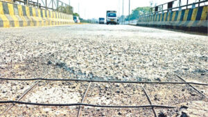 - पूरे पुल में जगह-जगह गडढे, सडक का लेबल भी नही बराबर