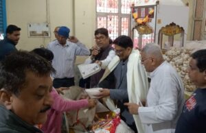 कानपुर, समाज में जनहित का कार्य करने वालों की कमी नहीं है जिसका उदाहरण,करोना जैसी महामारी के कारण अनाथ वा उजड़े हुए परिवारों, विकलांगो, विधवा, असहाय महिलाओं को हमारी संस्था पूज्य सिन्धी पंचायत के तत्वाधान में अध्यक्ष श्यामलाल मूलचंदानी के नेतृत्व में पिछले 44 महीने से हर महीने के द्वितीय रविवार को 225 लोगो को अन्ना (राशन) का वितरण किए जाने की कड़ी में इस माह अन्न वितरण किया गया । जिसमे आज के मुख्य अथिति विवेक कुमार देवेदी व प्रशान्त अवस्थी को मन्दिर समिति ने अंग वस्त्र पहनाकर व मोमेंटो देकर सम्मान किया। कार्यक्रम में मुख्य रूप से श्याम लाल मूल चंदानी बलराम कटारिया सुरेश वाधवानी हरी राम गंगवानी राजकुमार लालवानी दिनेश कटारिया बिहारी बजाज राजकुमार मोटवानी मनोज तलरेजा, लक्ष्मण दास नरेश फूलवानी आदि मौजूद रहेl