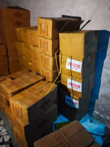 इसी क्रम में तिवारीपुर, जाजमऊ स्थित एक कचरी निर्माण स्थल पर छापेमारी की गई, जहां से लगभग 1350 किलोग्राम रंगीन कचरी, जिसकी अनुमानित कीमत ₹87,750/- है, बरामद हुई। कचरी में अत्यधिक मात्रा में कृत्रिम रंग पाए जाने के दृष्टिगत नमूना संग्रहण के उपरांत उक्त सामग्री को जब्त कर लिया गया।
