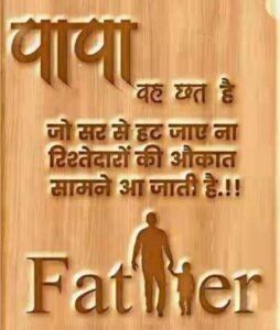 साथियों बात अगर हम पिता के बारे में वैश्विक बुद्धिजीवियों के विचारों की करें तो,:पिता का प्यार वह सूरज है जो बच्चे के जीवन पर चमकता है, उसे रोशनी और गर्मी से भर देता है।-हेट्टी बैनक्रॉफ्ट, मैंने अब तक जितने भी पुरुषों से मुलाकात की है,उनमें से कोई भी मेरे पिता के बराबर नहीं था, और मैंने कभी किसी अन्य व्यक्ति से इतना प्यार नहीं किया।हेडी लैमर,वह बुद्धिमान पिता है जो अपने बच्चे को जानता है।- विलियम शेक्सपियर,एक अच्छे पिता का कोई विकल्प नहीं है।रीड मार्खम,पिता का हृदय प्रकृति की उत्कृष्ट कृति है।-एंटोनी फ्रेंकोइस प्रीवोस्ट,पिता सबसे साधारण व्यक्ति होते हैं जो प्यार से नायक, साहसी कहानीकार और गीत गायकबन जाते हैं।-पाम ब्राउन,एक पिता सौ स्कूलमास्टरों से भी अधिक होता है।- जॉर्ज हर्बर्ट,एक पिता आपको यह नहीं बताता कि वह आपसे प्यार करता है। वह आपको दिखाता है।-दिमित्री मेरेज़ कोवस्की,जब आप किसी पिता से पूछेंगे कि बच्चों के बाद जीवन कैसा होता है, तो वह शायद बस बड़बड़ाएगा-रयान रेनॉल्ड्स,हर आदमी में एक छोटे लड़के जैसी कोई चीज़ होती है। और हर महिला में कहीं न कहीं उसके पिता की छवि होती है।- सिगमंड फ्रायड,एक पिता अपनी जीविका कमाने के लिए जो करता है,वह उसे एक अच्छा पिता नहीं बनाता, बल्कि वह जो खुद को देता है, वही मायने रखता है।- हॉवर्ड हेंड्रिक्स,मेरे पिता कहा करते थे कि जो आप बनना चाहते थे, उसके लिए कभी देर नहीं होती। और उन्हें यह बात पता होनी चाहिए। जब वे मेरी उम्र के हुए, तब तक वे मुझसे दुगुनी उम्र के हो चुके थे।- चार्ल्स वड्सवर्थ,मेरे पिता ने मुझे सबसे बड़ा उपहार दिया जो कोई भी किसी अन्य व्यक्ति को दे सकता है: उन्होंने मुझ पर विश्वास किया।- जिम वाल्वानो,आप हीरो नहीं बनाते, आप बेटों को पालते हैं।और अगर आप उनके साथ हीरो की तरह व्यवहार करेंगे, तो वे हीरो बन जाएंगे।- वाल्टर एम. शिर्रा जूनियर,एक बच्चे के जीवन में पिता की भूमिका अपूरणीय है।– जोसेफ आर. बिडेन,यह मांस और रक्त नहीं बल्कि हृदय है जो हमें पिता और पुत्र बनाता है।-फ्रेडरिक वॉन शिलर।