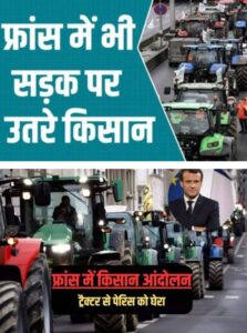 साथियों बात अगर हम फ्रांस में किसान आंदोलन उफान पर होने की करें तो, फ्रांस में चल रहे किसानों के आंदोलन के बाद फ्रांसीसी सरकार देश के प्रमुख राजमार्गों से बड़ी संख्या में ट्रैक्टरों को हटाने के लिए संघर्ष कर रही हैकिसान आंदोलन के प्रभाव को लेकर ओडोक्सा द्वारा किये गए सर्वेक्षण के अनुसार लगभग 89 प्रतिशत फ्रांसीसी नागरिक प्रदर्शनकारी किसानों का समर्थन कर रहे हैं।अब फ्रांस के भी किसान उस आंदोलन में शामिल हो गए हैं, जिसमें अब यूरोपीय संघ का लगभग 20 प्रतिशत हिस्सा शामिल है।इस एक खास ब्लॉक के 27 देशों में से पांच में किसानों ने अपनी मांगो को लेकर सड़कों को अवरुद्ध कर रखा हैं।पोलैंड, रोमानिया, जर्मनी और नीदरलैंड के किसानों के इस आंदोलन को फ्रांस के किसानों का समर्थन मिलने के बाद इस आंदोलन में एक तीव्र गति देखी जा रही है।फ्रांसीसी किसानों की शिकायतें भी पूरे यूरोपीय संघ के किसानों की शिकायतों से मिलती-जुलती हैं। वे अपनी ही सरकारों से नाराज़ हैं।किसानों को इस बात से शिकायत है कि ब्रुसेल्स में हुए मीटिंग के बाद उनकी अपनी निर्वाचित सरकारें टेक्नोक्रैट के दबाव में अपनी नीतियों को किसानों के खिलाफ बदल रहे हैं।इन पांचो ही देशों में किसानों को अपनी सरकार के इन्हीं नीतियों के खिलाफ सड़क पर उतरना पड़ा,इसलिए उनकी मांगें भी समान है।किसान ऊर्जा के लिए उचित मूल्य चाहते हैं जबकि यूरोपीय संघ ने न केवल महंगी जलवायु नीतियां लागू की हैं जो जीवाश्म ईंधन को प्लेग की तरह मानती हैं। बल्कि रूसयूक्रेन में यूक्रेन का समर्थन करने के लिए यूरोप की अर्थव्यवस्था को चलाने वाली सस्ती रूसी गैस की अपनी आपूर्ति को नष्ट करने का भी फैसला किया है।साथ ही उन्होंने यूक्रेन से वस्तुओं और सेवाओं पर आयात शुल्क हटाने का फैसला किया, जिससे यूरोपीय संघ में ट्रक ड्राइवरों की बाढ़ आ गई जो स्थानीय प्रदाताओं को कम कीमत पर अपना सामान बेचते हैं और तो और उन कृषि उत्पादों को भी कम कर देते हैं जो यूरोपीय किसानों के यूरोपीय संघ के मानकों को भी पूरा नहीं करते हैं।इन सब नीतियों की वजह से सरकारें अपनी खर्च को कम करने के उपाय ढूंढ रही हैं और ऐसे में किसानों पर बोझ डाला जा रहा है। फ्रांस के किसानों का विरोध प्रदर्शन पूरी दुनिया में चर्चा का विषय बना हुआ है। सैकड़ों किसान सरकार की नीतियों के खिलाफ सड़क पर उतर आए हैं।प्रदर्शनकारियों ने ट्रैक्टरों से चक्का जाम किया हुआ है।सरकारी कार्यालयों के बाहर बदबूदार कृषि कचरा भी फेंककर विरोध दर्ज कराया जा रहा है. कुछ नाराज प्रदर्शनकारी राजधानी पेरिस के आसपास के ट्रैफिक को ब्लाॅक करने की योजना बना रहे हैं। यह स्थिति सिर्फ फ्रांस तक सीमित नहीं है फ्रांस यूरोपीय संघ का सबसे बड़ा कृषि उत्पादक है और 