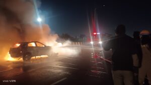कानपुर नगर, रूमा फ्लाई ओवर महाराजपुर के कुलगांव चौकी के पास शार्ट सर्किट से एक कार में भीषण आग लग गई, जिससे क्षेत्र में अफरा तफरी फैल गई।