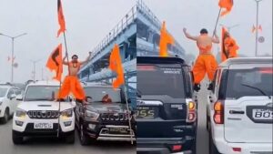 # वीडियों में स्कॉर्पियों के बोनट पर खडे होकर भगवा लहराता दिख रहा युवक