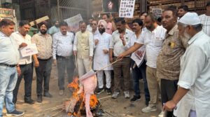 व्यापारियों ने पाकिस्तान के झंडे को जलाकर किया दहन