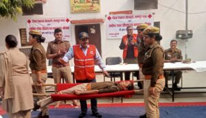 कानपुर। नगर में यातायात व्यवस्था को सुधार के लिए नित्य प्रतिदिन प्रयासरत पुलिस आयुक्त डॉ आर के स्वर्णकार व संयुक्त पुलिस आयुक्त आनंद प्रकाश तिवारी के निर्देशन में यातायात पुलिस लाइन कानपुर में तीसरे दिन दिन इंडियन रेड क्रॉस सोसायटी कानपुर द्वारा प्राथमिक उपचार प्रशिक्षण कैंप का समापन अंकिता शर्मा एडीसीपी यातायात पुलिस, रेड क्रॉस के सचिव आर के सफड ने किया लखन शुक्ला मास्टर ट्रेनर इंडियन रेड क्रॉस सोसायटी कानपुर द्वारा दिया गया।