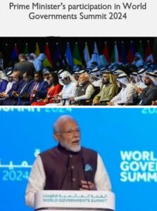 साथियों बात अगर हम विश्व सरकार शिखर सम्मेलन में माननीय पीएम के संबोधन की करें तो उन्होंने कहा, आज विश्व को साफ और पारदर्शी सरकार की जरूरत है आगे जोड़ते हुए उन्होंने कहा, आज विश्व को ऐसी सरकारों की जरूरत है जो क्लीन हो, करप्शन से दूर हो,जोट्रांसपेरेंट हो। आज विश्व को ऐसी सरकारों की जरूरत है जो ग्रीन हो, पर्यावरण से जुड़ी चुनौतियों को लेकर गंभीर हो। आज विश्व को आवश्यकता है ऐसी सरकारों की जो ईज ऑफ लिविंग, ईज ऑफ जस्टिस, ईज ऑफ मोबिलिटी, ईज ऑफ इनोवेशन और ईज ऑफ डूइंग बिजनेस को अपनी प्राथमिकता बनाकर चले, गत वर्षों में लोगों का भरोसा भारत सरकार पर बढ़ा है।पीएम ने बताया कि उन्होंने हमेशा ऐसा एनवायरनमेंट क्रिएट करने पर जोर दिया जो नागरिकों में एंटरप्राइज और एनर्जी दोनों को और बढ़ाए। हम टॉप डाउन और बॉटम अप अप्रोच के साथ-साथ होल ऑफ सोसाइटी अप्रोच को लेकर भी चले हैं। हमनेहोलिस्टिक अप्रोच पर बल दिया,पीपल पार्टिसिपेशन को सर्वोच्च प्राथमिकता दी। सुशासन में हमने जनभावनाओं को जगह दी है। हमने प्रयास किया कि कोई अभियान भले ही सरकार शुरू करे लेकिन समय के साथ देश की जनता उसकी बागडोर खुद संभाल ले। जनभागीदारी के इसी सिद्धांत पर चलते हुए हमने भारत में अनेक बड़े ट्रांसफॉर्मेशन देखें हैं। हमारी सैनिटेशन ड्राइव हो, गर्ल एजुकेशन को बढ़ाने का अभियान हो, डिजिटल लिटरेसी हो इनकी सफलता पिपल्स पार्टिसिपेशन से ही सुनिश्चित हुई है।पीएम ने कहा, मैं मानता हूं कि सरकार का अभाव भी नहीं होना चाहिए और सरकार का दबाव भी नहीं होना चाहिए। मैं ये मानता हूं कि लोगों की जिंदगी में सरकार का दखल कम से कम हो ये सुनिश्चित करना भी सरकार का ही काम है। हम अक्सर कई एक्सपर्ट्स को सुनते हैं कि कोविड के बाद दुनियाभर में सरकारों पर भरोसा कम हुआ है लेकिन भारत में हमने एक दम विपरीत अनुभव देखा।कोविड के बाद दुनिया भर में सरकारों पर भरोसा कम हुआ है बीते वर्षों में भारत सरकार पर लोगों का भरोसा और मजबूत हुआ है, लोगों को हमारी सरकार के इंटेंट और कमिटमेंट दोनों पर पूरा भरोसा है। ये कैसा हुआ? क्योंकि हमने गवर्नेंस में जनभावनाओं को प्राथमिकता दी है।हम देशवासियों की जरूरत के प्रति संवेदनशील है। हमने लोगों की जरुरतों और लोगों के सपनों को पूरा करने पर ध्यान दिया है। पीएम ने कहा इन 23 वर्षों में सरकार में मेरा सबसे बड़ा विश्वास बड़ा। यह दुनिया भर के थॉट लीडर्स को एक मंच पर लाने का एक बड़ा माध्यम बन चुकी है। दिवसीय यात्रा पर संयुक्त अरब अमीरात में है। पीएम ने अपनी यात्रा के दूसरे दिन आज, बुधवार को दुबई में विश्व सरकार शिखर सम्मेलन में वैश्विक नेताओं को संबोधित किया। भारत ने विश्व को एक नया मार्ग सुझाया है। एक विश्व बंधु के रूप में भारत इसी सोच के साथ आग
